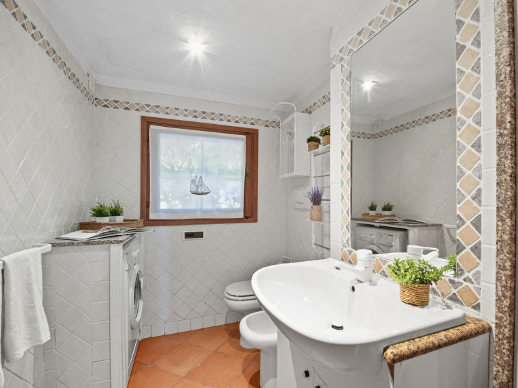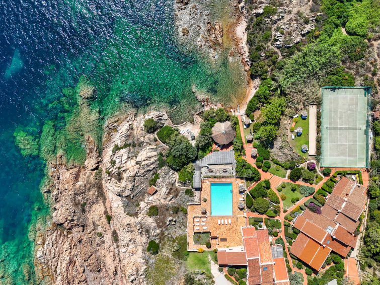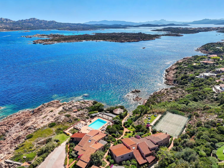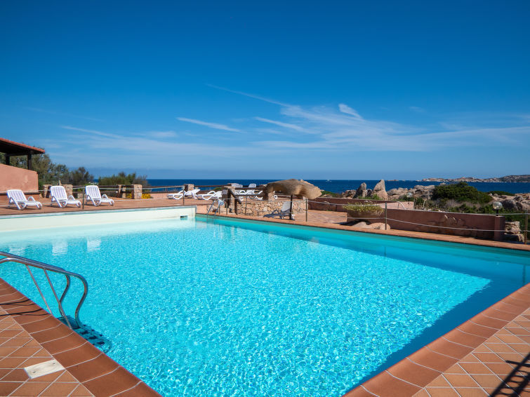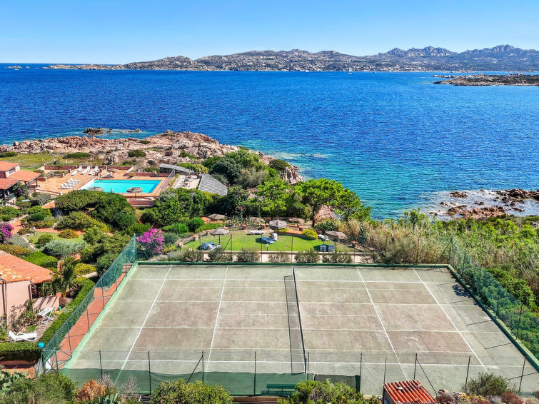 Villaggio Piras: Residentie "Sporting House". 3 km van het centrum van La Maddalena, rustige, zonnige ligging in een woonwijk, 50 m van zee, 100 m van het strand. Voor medegebruik: park, groot, verzorgde tuin planten en bloemen, openluchtzwembad omheind (25 x 10 m, 130 - 250 cm diepte, seizoensgebonden beschikbaarheid: 15.Jun. - 15.Sep.). Buitendouche, tennisbaan (1 x hard court), jeu de boules, tuinmeubelen, parkeerplaats op het terrein. Supermarkt 2.5 km, restaurant 2 km, bar 2 km, bushalte 5 km, zandstrand "Spalmatore" 4 km. Jachthaven 3 km. Attracties in de buurt: Palau 6 km, Olbia 45 km, Porto Cervo 37 km, Santa Teresa 31 km. Auto noodzakelijk.