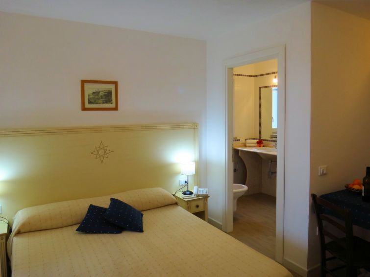 "K Mono", appartement 1-kamer 20 m2. Mooi en modern ingericht: woon-/eetkamer met 1 2-pers bed. Uitgang naar het terras. Kleine keuken (2-pits kookplaat, diepvriezer). Douche/bidet/WC. Geen verwarmingsmogelijkheid. Maximaal 1 huisdier/hond toegestaan. IT090079B4000E2224