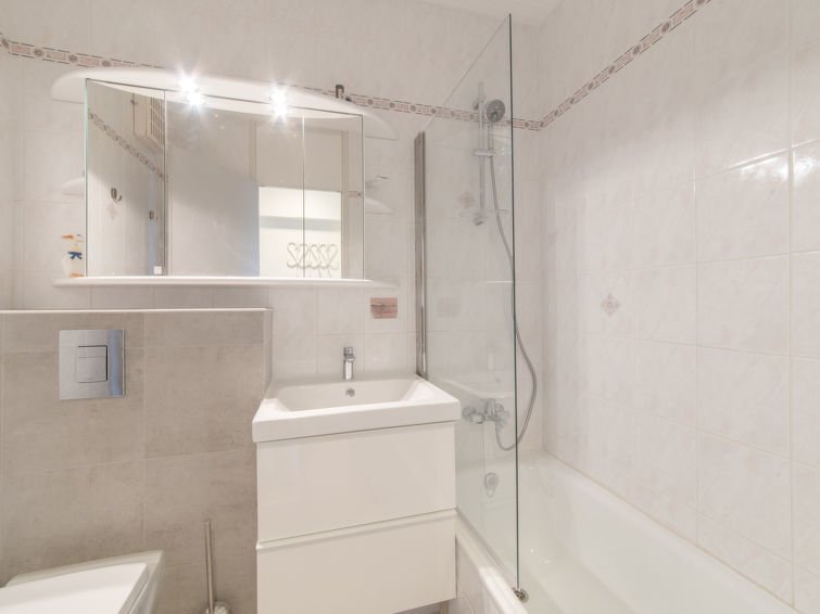 Vosseslag 3 km van De Haan aan Zee: Kindvriendelijk vakantiepark "Iris", van 8 verdiepingen, omgeven door velden. Aan de rand van de plaats, 3 km van het centrum van De Haan, 1 km van zee, 1 km van het strand. Voor medegebruik: terrein 10 ha (omheind). Tennisbaan, basketbal, jeu de boules, volleybalveld, barbecue, kinderspeelplaats. In het complex: lift, bergruimte voor fietsen. Parkeerplaats bij het huis. Supermarkt 3 km, restaurant 500 m, bakkerij 400 m, tramhalte "de Haan Vosseslag" 1 km, bushalte "Halte De Haan Violierenlaan" 650 m, treinstation "Oostende" 10 km, zandstrand "De Haan" 1 km, fKK-strand 2 km. Golfterrein (18 holes) 2 km. Attracties in de buurt: Brugge 17 km, Plopsaland 50 km, Gent 65 km, Sea Life Marine Park 13 km.