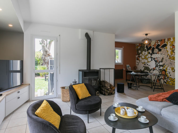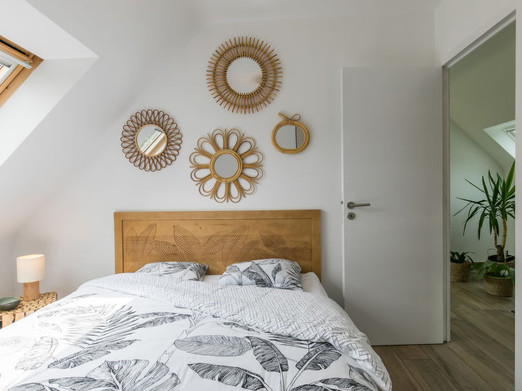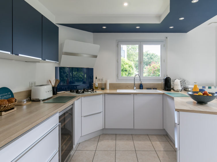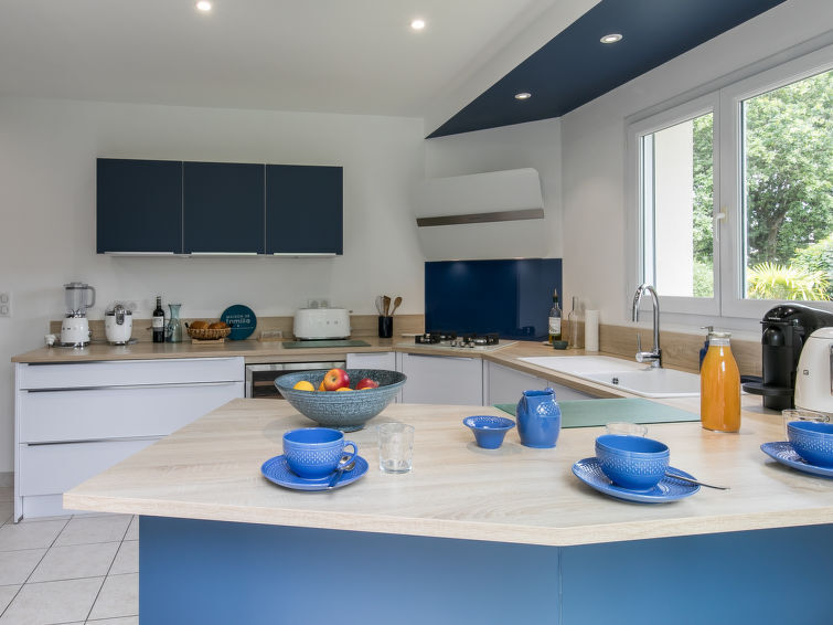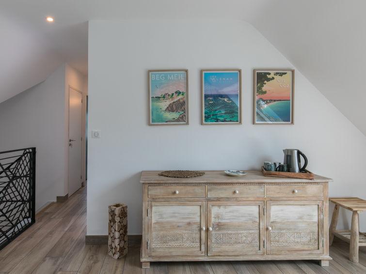 Zeer mooi, luxueus huis "L'échappée". In de wijk Mousterlin, 4.3 km van het centrum van Fouesnant, 16 km van het centrum van Quimper, 2.4 km van zee, 2.4 km van het strand. Voor alleengebruik: terrein 1.500 m2, verzorgde tuin, parkeerplaats (voor 2 auto's) op het terrein. Winkel 4 km, levensmiddelenwinkel 4 km, winkelcentrum 5.5 km, restaurant 1.8 km, bakkerij 1.4 km, bushalte 1.3 km, zandstrand "Plage et Dunes de Kerler" 2.4 km, thermaalbad "Thalasso benodet" 5.5 km. Jachthaven 10 km, golfterrein (18 holes) 4.3 km, surfschool 5 km, zeilschool 7 km. Attracties in de buurt: Benodet,départ Odet,Archipel des Glénans 6 km, Le Cap Coz 7.5 km, Concarneau et Ville Close 15 km, Pont Aven 29 km, Pointe de la Torche 28 km, Locronan 34 km. Wandelgebied GR34, sentier des douaniers 2 km.