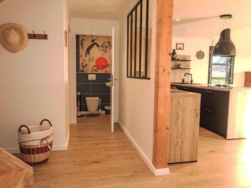 Fouesnant: Mooi, gezellige eengezinswoning "Ty'vonne". In de wijk Sainte Anne, 1.5 km van het centrum van Fouesnant, 3.7 km van zee, 3.7 km van het strand. Voor alleengebruik: terrein 600 m2, verzorgde tuin met gazon en planten, parkeerplaats (voor 2 auto's) op het terrein. Winkel 1.6 km, supermarkt 1.5 km, winkelcentrum 1.2 km, restaurant 650 m, bakkerij 450 m, café 1.2 km, fietsverhuur 2 km, bushalte 550 m, zandstrand "Plage de Cap Coz" 3.7 km, thermaalbad "Bénodet ou Concarneau" 10 km. Jachthaven 6 km, jachthaven 6 km, golfterrein (18 holes) 47.0 km, surfschool 3.7 km, zeilschool 3.7 km, wandelroutes 100 m vanaf het huis, fietspad 10 m. Attracties in de buurt: Beg Meil 6 km, Dunes de Kerler, Mer Blanche 8 km, Bénodet 10 km, Concarneau, Ville Close 14 km, Quimper 16 km, Pointe de la Torche, Pays Bigouden 32 km. Wandelgebied GR34, sentier des douaniers 3.3 km.