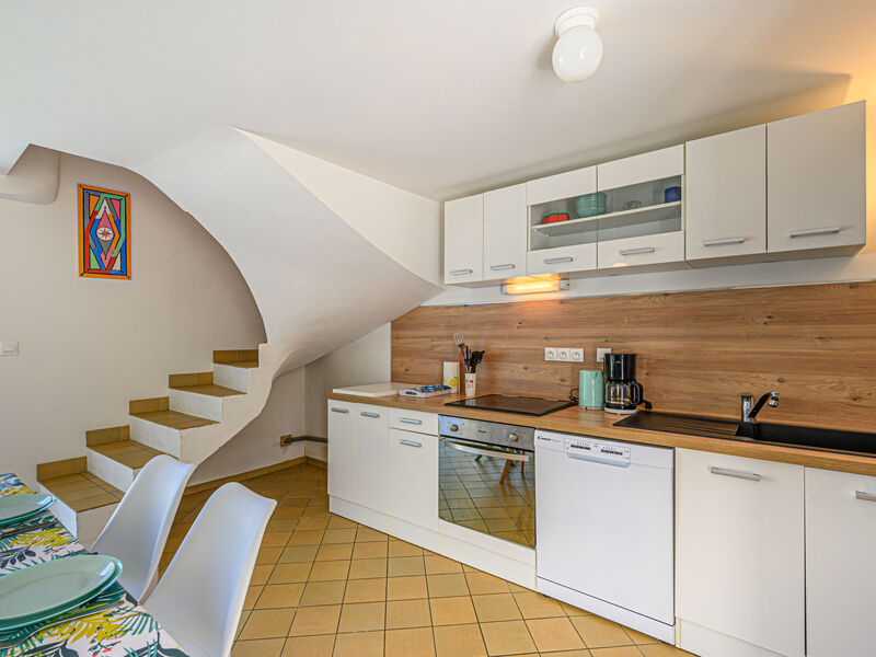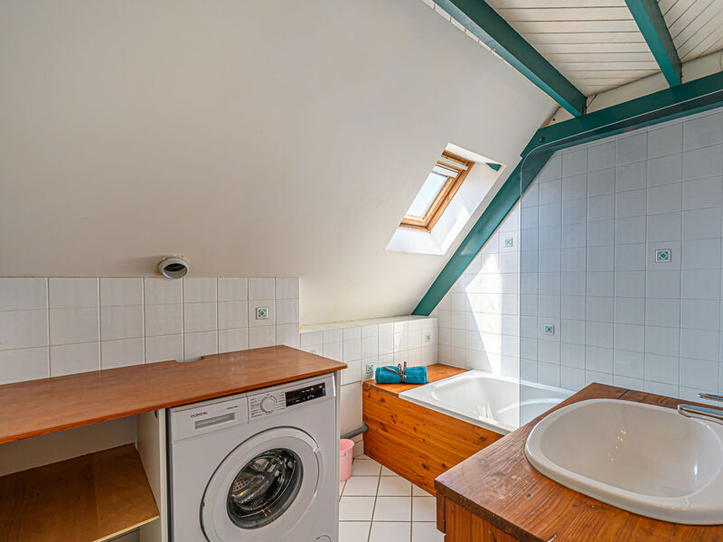 Rijtjeshuis "Le Trion", van 2 verdiepingen. In de plaats, 900 m van het centrum van Quiberon, 900 m van zee, 900 m van het strand. Openbare parkeerplaatsen. Winkel 900 m, levensmiddelenwinkel 200 m, supermarkt 1.2 km, restaurant 800 m, bushalte 150 m, zandstrand "Grande plage de Quiberon" 1 km, thermaalbad "Thalassothérapie de Quiberon" 1.3 km. Jachthaven 1.6 km, golfterrein (9 holes) 900 m, surfschool 6 km, zeilschool 4 km, tennishal 1.5 km. Attracties in de buurt: Presqu'ile de Quiberon, Carnac et les alignements 20 km, Auray 30 km, Vannes 50 km, Lorient 65 km. De sleuteloverdracht vindt plaats bij het agentschap Interhome in Quiberon, 1 km.