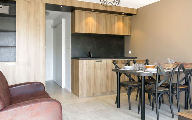 "T3-Résidence La Carquois (CPF300)", huis in een rij 3-kamers 45 m2 op 2 verdiepingen. Gerenoveerd in 2018, mooi ingericht: woonkamer met TV. Uitgang naar het terras. Kookhoek (afwasmachine, 3 inductiekookplaten, broodrooster, waterkoker, diepvriezer, elektrische koffiemachine, combimagnetron). Douche/WC. Bovenverdieping: 1 kamer met afgeschuinde daken met 1 2-pers bed (140 cm, lengte 190 cm). 1 kamer met afgeschuinde daken met 2 bedden (90 cm, lengte 190 cm). Elektrische verwarming. Terras 15 m2. Terrasmeubelen. Ter beschikking: kinderstoel, kinderbed (extra). Internet (Internet (WiFi), gratis). Let op: maximaal 1 huisdier/hond toegestaan. Rookmelders.