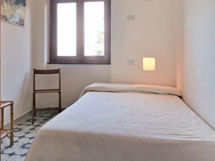 Huis 5-kamers 120 m2. Doelmatig en comfortabel ingericht: groot woon-/eetkamer met Sat-TV. Uitgang naar de zitplaats in de tuin. Keuken (4-pits kookplaat, oven, afwasmachine, magnetron, diepvriezer, elektrische koffiemachine). Douche/bidet/WC. Geen verwarmingsmogelijkheid. Bovenverdieping: 1 2-pers. kamer. Uitgang naar het terras. 2 kamers, elke kamer heeft 1 x 2 stapelbedden. 1 kamer met 1 bed. Bad/bidet/WC. Geen verwarmingsmogelijkheid. Ruime zithoek in de tuin gedeeltelijk overdekt, tuin. Terrasmeubelen, ligstoelen. Mooi uitzicht op zee. Ter beschikking: wasmachine. IT090062C2000Q2142