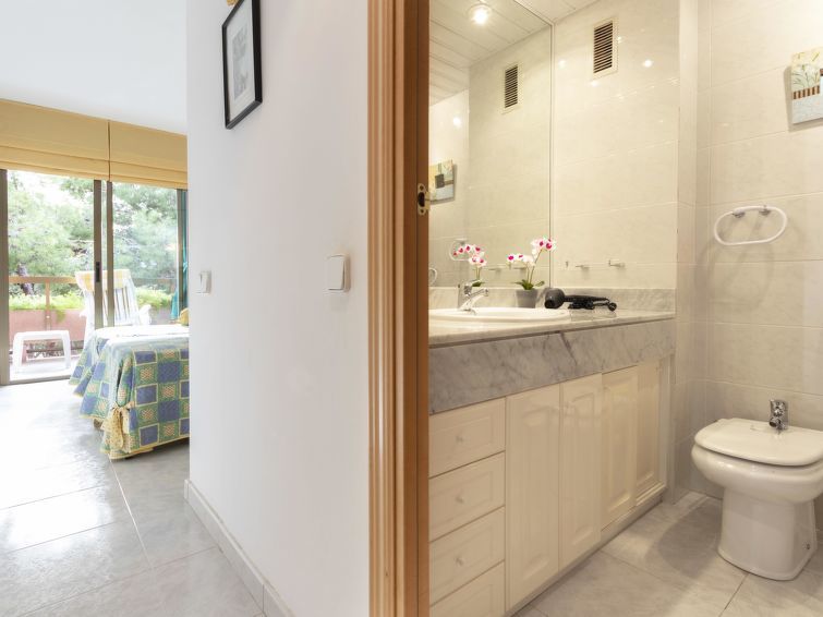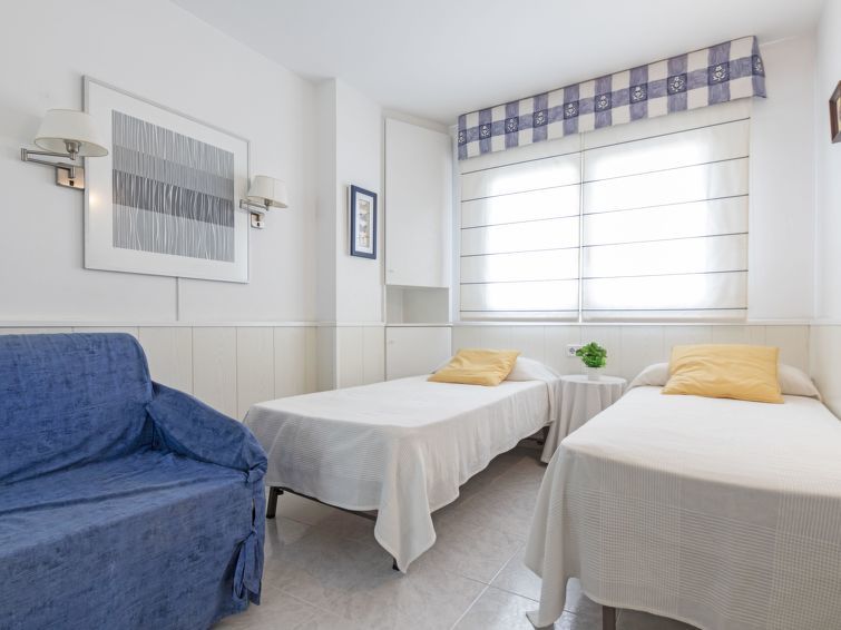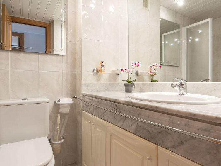 "Els Pins Maria", appartement 3-kamers 70 m2 op de 5e verdieping. Het objekt is geschikt voor 2 volwassenen + 2 kinderen. Licht, doelmatig en comfortabel ingericht: woon-/eetkamer met Digitale TV. Uitgang naar het terras. 2 kamers, elke kamer heeft 2 bedden (80 cm, lengte 190 cm). Keuken (4-pits kookplaat, oven, broodrooster, waterkoker, magnetron, elektrische koffiemachine). 2 bad/WC's. Air-conditioning. Geen verwarmingsmogelijkheid. Terras. Terrasmeubelen. Beperkt uitzicht op het zwembad. Ter beschikking: wasmachine, strijkijzer, kinderstoel, kinderbed tot 2 jaar, haardroger. Internet (WiFi, gratis). Parkeerplaats nr. 36 (1 Auto) bij het huis. Geschikt voor families. Niet rokers woning, parkeerplaats alleen voor een kleine auto. HUTT-013789 // Reg. Nr.: ESFCTU00004302700022747800000000000000000HUTT-0137898