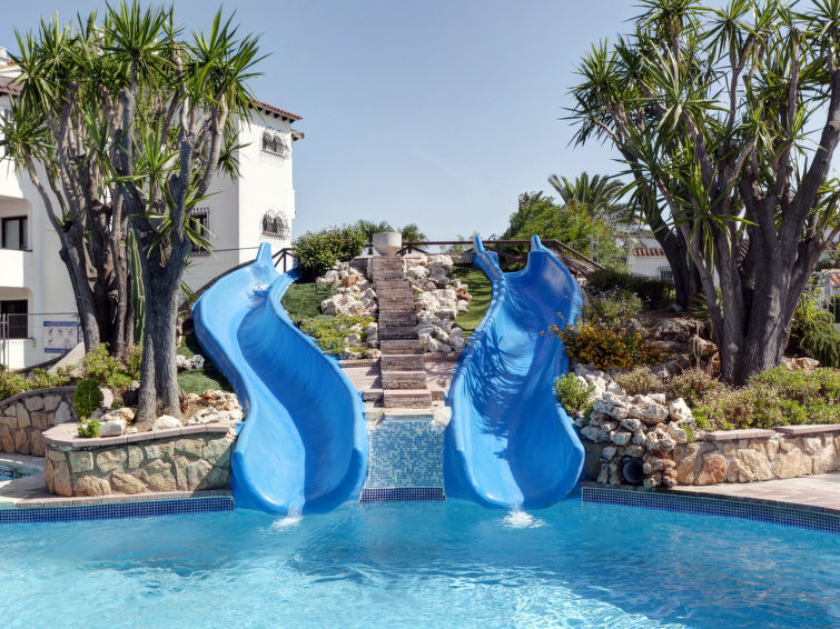 Residentie met 2 zwembaden voor medegebruik. Groot, gezellige residentie "El Palmar 9". In de wijk Las Marinas, 4.5 km van het centrum van Dénia, 400 m van zee, de straat oversteken. Voor medegebruik: openluchtzwembad (35 x 30 m, 80 - 210 cm diepte, seizoensgebonden beschikbaarheid: 01.Jan. - 31.Dec.) met trap. Kinderzwembad, glijbaan, kinderspeelplaats, Openbare parkeergarage. Supermarkt 400 m, restaurant 300 m, bar, café 300 m, bushalte 300 m, zandstrand 400 m. Golfterrein (18 holes) 11 km, tennis 2 km. Geen lift.